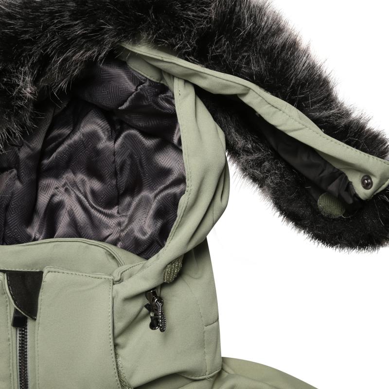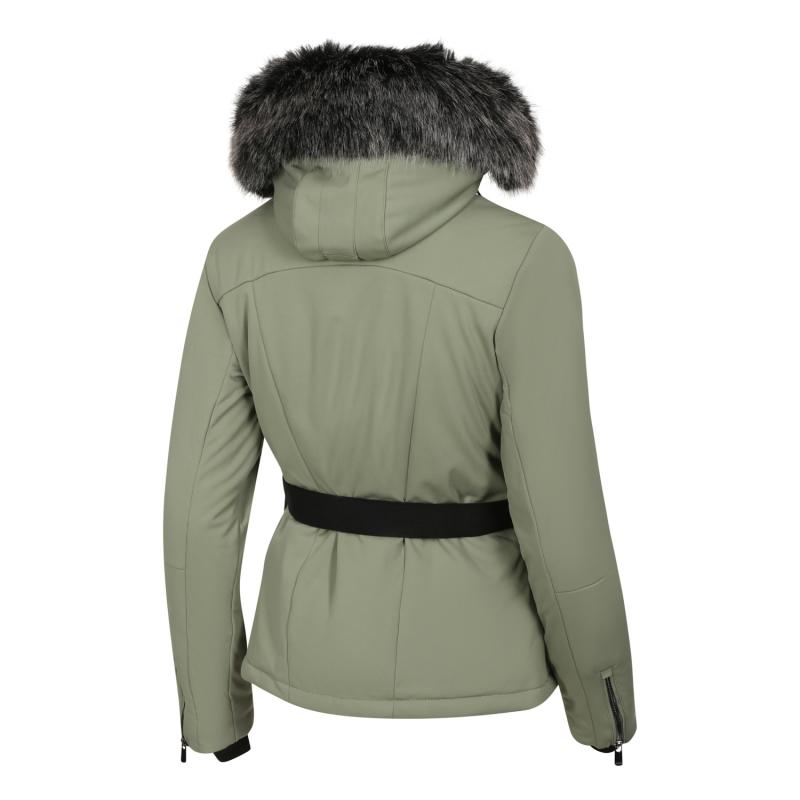 Stredná hrejivá výplň doplnená efektnou podšívkou poskytuje dostatočné teplo aj v chladnejšom počasí, pričom priliehavý strih zvýrazňuje ženskú siluetu a zároveň umožňuje voľnosť pohybu. Odopínateľná kapucňa so sťahovaním a umelá kožušina, ktorú je tiež možné odopnúť, pridávajú bunde na praktičnosti i štýle.