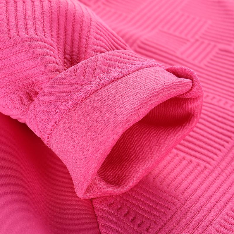 Kontrastné panely sú zároveň hrejivé a pružné, vďaka čomu sa mikina dokonale prispôsobí postave, neobmedzuje pohyb a dodáva športovému strihu elegantný vzhľad. Polopriehliadny strih zvýrazňuje ženskú siluetu, zatiaľ čo dlhý kontrastný zips s praktickou krytkou pri brade uľahčuje obliekanie a zvyšuje komfort pri nosení.