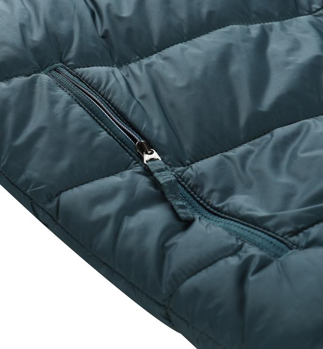 Tato úprava navíc neobsahuje fluorocarbony, a je tak příznivá k životnímu prostředí. Bunda má silnou hřejivou výplň, kontrastní prošívanou podšívku, kapuci, rukávy a spodní část lemované gumou, krytku brady, 4 praktické kapsy se zipy a delší taháčky pro snadnou manipulaci. Bunda je plnohodnotně oboustranná. Složení materiálu: 100% nylon.