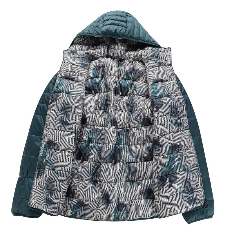 Pánská zimní bunda EROM je vyrobena z vodoodpudivého, větruodolného, ultralehkého a krásně celopotištěného materiálu se zátěrem a funkční úpravou Teflon EcoElite™.Tato úprava navíc neobsahuje fluorocarbony, a je tak příznivá k životnímu prostředí. Bunda má silnou hřejivou výplň, kontrastní prošívanou podšívku, kapuci, rukávy a spodní část lemované gumou, krytku brady, 4 praktické kapsy se zipy a delší taháčky pro snadnou manipulaci. Bunda je plnohodnotně oboustranná. Složení materiálu: 100% nylon.