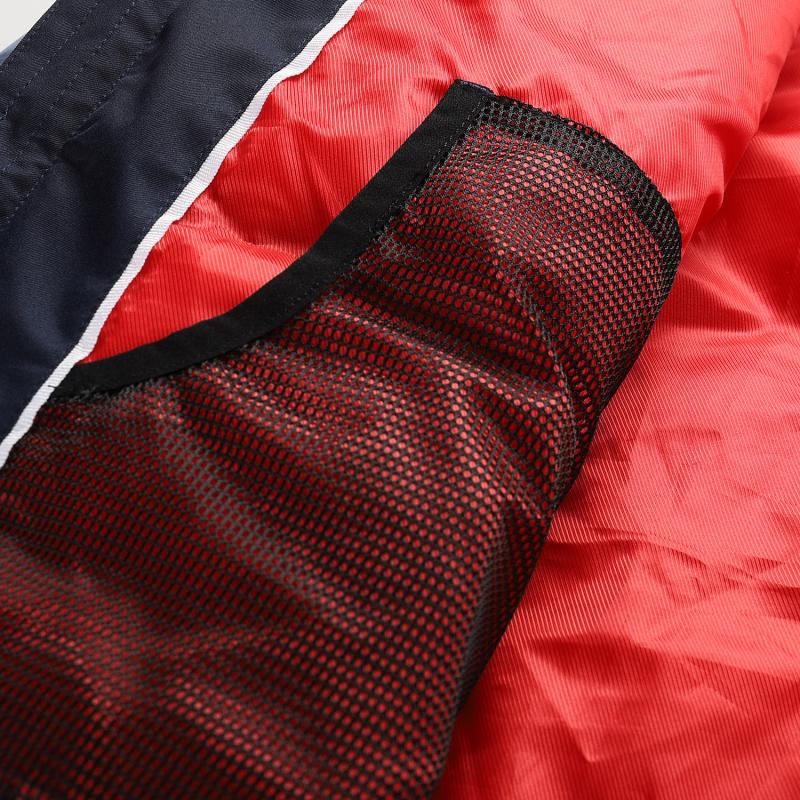Praktické detaily zahrnují celkem 6 kapes, z toho jedna obsahuje klíčenku, což pomáhá udržet drobnosti bezpečně po ruce. Spodní část bundy je vybavena regulací šířky pomocí gumičky a je vzadu prodloužená pro lepší ochranu zad. Důležitou funkcí je odepínatelný sněhový pás s elastickou vsadkou v horní části, která umožňuje větší rozsah pohybu a zabraňuje pronikání sněhu pod bundu.