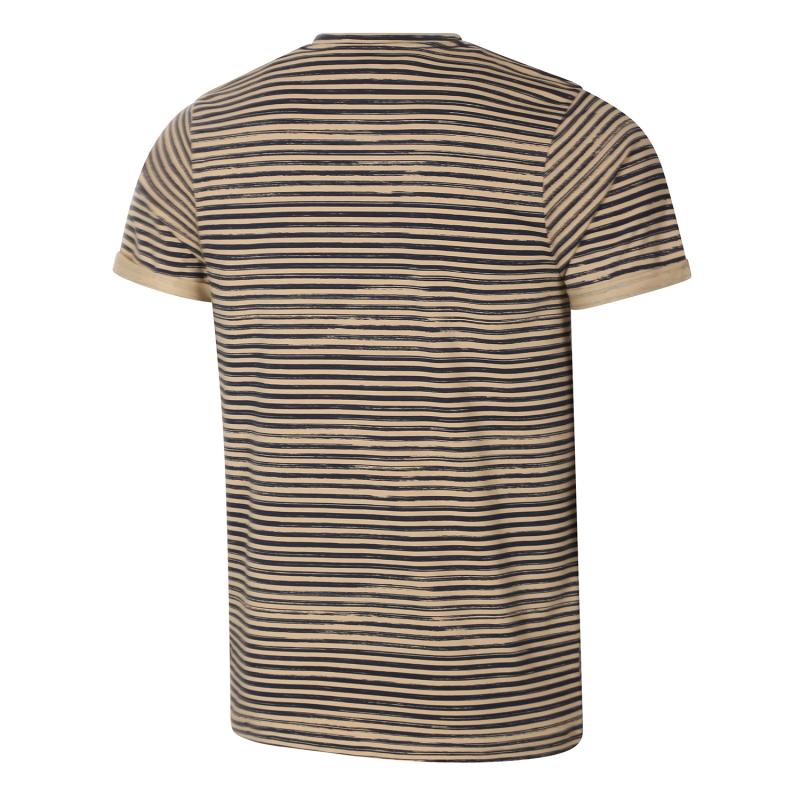 Toto tričko zaujme originálnym pruhovaným potlačou, ktorá mu dodáva výrazný a zároveň štýlový vzhľad. Nenápadná nášivka umiestnená v bočnom šve podčiarkuje jeho dôkladné spracovanie a kvalitu. Vyrába sa z vyberanej bavlny FINE COTTON (95 %), ktorá je príjemná na dotyk a zároveň priedušná, čo zabezpečuje komfort aj pri dlhšom nosení. Materiál je doplnený o 5 % elastanu, vďaka čomu je celopotlačený a zároveň pružný, čo umožňuje slobodu pohybu a pohodlné nosenie bez obmedzení. Polopriliehavý strih trička zabezpečí elegantné padnutie na telo, bez toho aby obmedzoval aktivitu, a je tak vhodný pre každodenné nosenie, voľnočasové aktivity i prechádzky v prírode. Spája v sebe praktickosť, štýl a komfort, čo z neho robí nadčasový kúsok pre moderného muža.