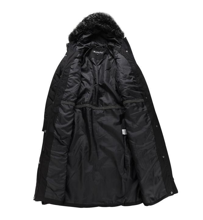 Alpine Pro GOSBERA dámsky čierny kabát s membránou ptx dlhý POUZE S-Lady (širší) (VÝPREDAJ)