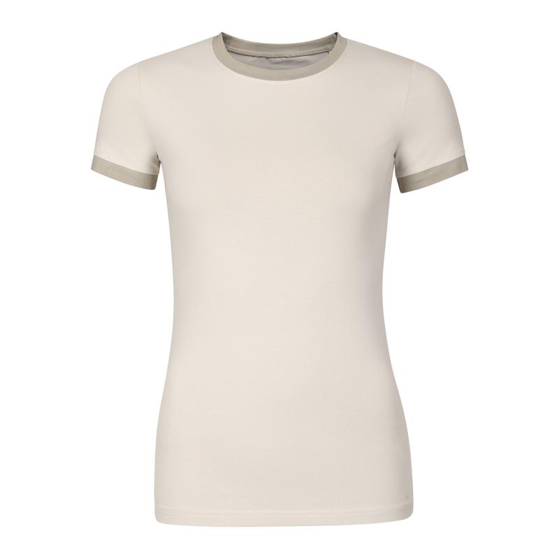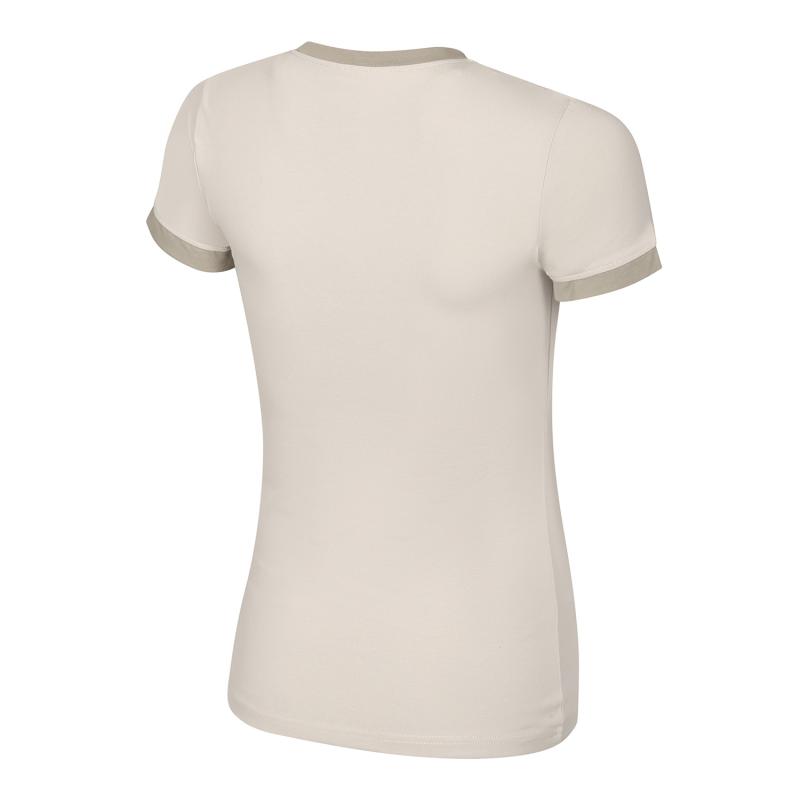 Vyrobené z pružného a mäkkého materiálu FINE COTTON, toto tričko ponúka priliehavý strih, ktorý lichotí ženskej postave a zabezpečuje pohodlie. Rukávy sú zakončené lemami z úpletu s kontrastnými detailmi, ktoré dodávajú tričku moderný vzhľad a zvýrazňujú jeho dizajn.