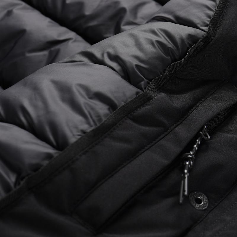 Vesta má neodepínatelnou kapuci, která chrání hlavu před větrem a deštěm, a praktický dvoucestný zip pro snadné zapínání a regulaci teploty. Celkem sedm kapes, včetně hřejivých vnitřních kapes, nabízí dostatek místa pro uložení drobností i možnost zahřátí rukou. Moderní vzhled doplňují detaily jako potisk a nášivka na předním dílu.