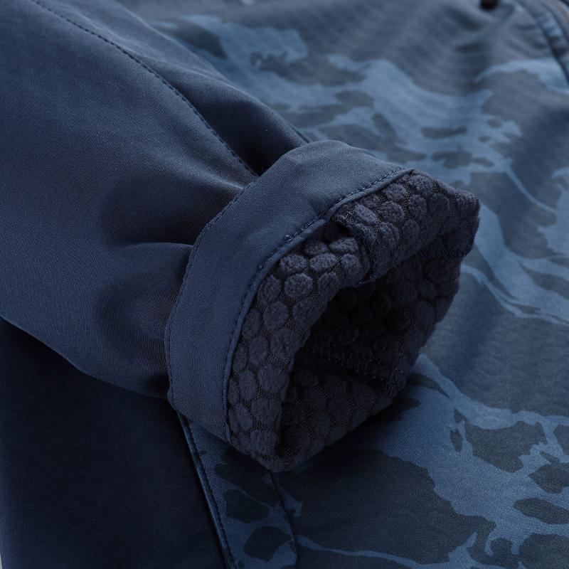Úprava materiálu: DWR, paropropustnost 3 000 g/m2/24h, membrána SOFT-SHELL WINDBARRIER, vodní sloupec 8 000 mm