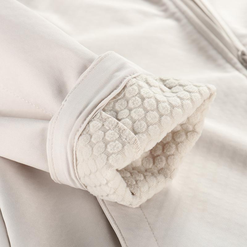 Polopřiléhavý střih bundy se přizpůsobí ženské postavě a zaručuje pohodlí během celodenního nošení. Součástí je odepínatelná kapuce se stahováním, která umožňuje přizpůsobit ochranu podle aktuálního počasí. Prodloužená spodní část s možností regulace šířky stahováním gumičkou zvyšuje komfort a ochranu proti větru.