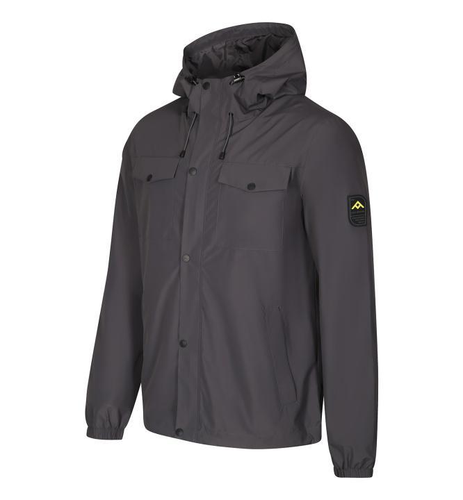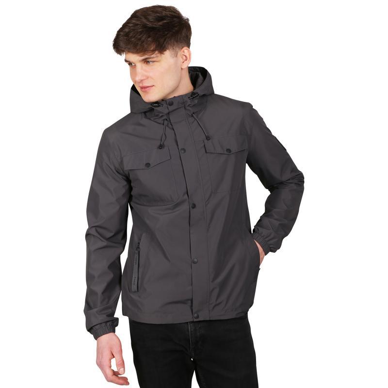 Táto funkčná bunda spoľahlivo ochráni pred nepriaznivým počasím, či už ju nosíte v meste alebo v prírode. Moderná farebná kombinácia s potlačou na kapucni a nášivkou na rukáve dodáva štýlový vzhľad, ktorý oceníte pri každodennom nosení.\n\nBunda je vybavená praktickými štyrmi vreckami, ktoré uľahčujú uloženie drobností, kapucňou so sťahovaním pre lepšiu ochranu hlavy a kvalitným zipsom pre jednoduché zapínanie. Nariasené rukávy do gumy a možnosť regulácie šírky spodného lemu pomocou sťahovacej gumičky prispievajú k pohodliu a zabraňujú prenikaniu vetra či dažďa.\n\nHlavné parametre a vlastnosti:\n• Farba: neutrálna / zemité odtiene\n• Pohlavie: pánske\n• Zloženie: 100 % polyester\n• Vrstva: tretia vonkajšia ochranná vrstva\n• Vrecká: celkovo 4 praktické vrecká\n• Kapucňa: so sťahovaním pre lepšie prispôsobenie\n• Materiál: nepremokavý, vetruodolný a paropriepustný\n• Úprava materiálu: vodoodpudivá DWR a membrána PTX\n• Strih: polopriliehavý pre pohodlné nosenie\n• Detaily: potlač na kapucni, nášivka na rukáve\n• Rukávy: nariasené do gumy pre lepšiu tesnosť\n• Spodný lem: regulovateľný sťahovaním gumičkou\n\nVďaka použitiu membrány PTX bunda zabezpečuje dostatočnú ochranu pred dažďom a vetrom, zároveň umožňuje odvod vlhkosti, čo pomáha udržať telo v suchu. Vodoodpudivá úprava DWR znižuje nasiakavosť materiálu a predlžuje jeho životnosť. Polopriliehavý strih poskytuje voľnosť pohybu a prispieva k celkovému komfortu.\n\nTento model je vhodný pre každodenné nosenie v mestskom prostredí i pri ľahšej outdoorovej aktivite, kde oceníte kombináciu ochrany a pohodlia. Vďaka praktickým vreckám máte všetko potrebné vždy po ruke. Kapucňa so sťahovaním a regulovateľný spodný lem pomáhajú prispôsobiť bundu aktuálnym podmienkam.\n\nVyberte si bundu, ktorá ponúka funkčnosť bez zbytočných kompromisov a zároveň pôsobí štýlovo. Je ideálnou voľbou pre mužov, ktorí hľadajú spoľahlivý odev do premenlivého počasia.\n\nZhrnutie kľúčových vlastností:\n• Nepremokavý a vetruodolný materiál s membránou PTX\n• Vodoodpudivá úprava DWR pre lepšiu ochranu\n• Praktické vrecká pre uloženie drobností\n• Kapucňa a spodný lem s možnosťou regulácie\n• Polopriliehavý strih zabezpečujúci pohodlie\n\nTáto bunda predstavuje vyvážený kompromis medzi funkčnosťou a moderným dizajnom, ktorý ocení každý muž hľadajúci spoľahlivý odev do nepriaznivého počasia. Využite jej vlastnosti a užite si pohodlné nosenie aj v premenlivých podmienkach.