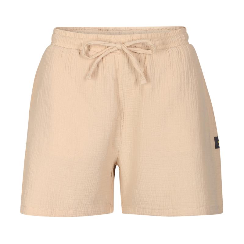 Volnější střih a pas nařasený do gumy se stahovací šňůrkou poskytují možnost individuálního přizpůsobení a pohodlí po celý den. Praktické využití doplňují dvě kapsy, které jsou ideální pro uložení drobností, a stylová nášivka všitá do bočního švu dodává kraťasům decentní designový prvek.