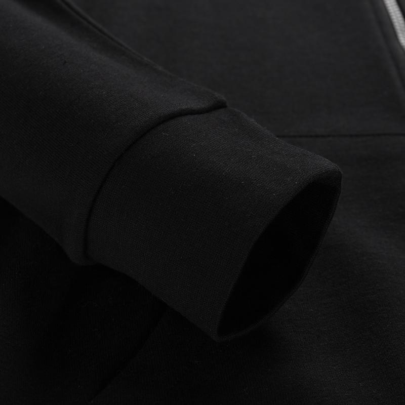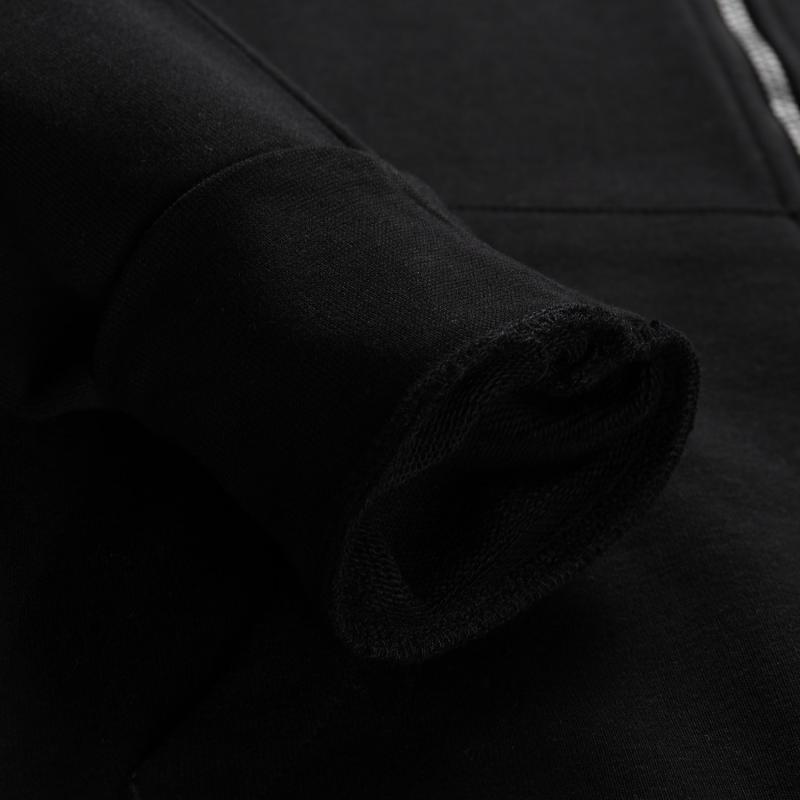 Úpletové lemy na rukávech a spodním okraji pomáhají udržet tvar mikiny a zvyšují komfort při nošení, protože zabraňují nežádoucímu shrnování materiálu.