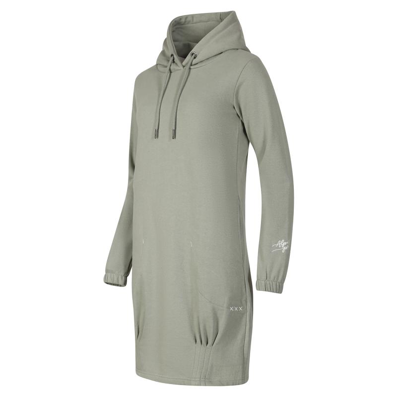 Lehké šaty z bavlny a polyesteru s dvojitou kapucí a praktickými kapsami, vhodné jako izolační vrstva s polopřiléhavým střihem a nařasenými rukávy.Šaty v šedé barvě jsou určeny pro ženy, které hledají pohodlný a funkční kousek do svého šatníku. Materiál tvoří 60 % bavlna a 40 % polyester, což zajišťuje příjemný pocit na pokožce a zároveň dostatečnou odolnost a snadnou údržbu. Díky složení představují šaty druhou izolační vrstvu, která ochrání před mírným chladem.
