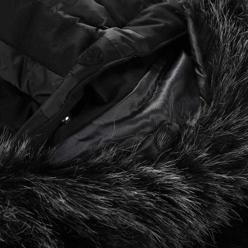 Střední hřejivá výplň v kombinaci s efektní podšívkou a přiléhavým střihem poskytuje pohodlí a dostatek volnosti pohybu. Švy jsou podlepené pro lepší ochranu proti pronikání vody, přičemž prošívání má dekorativní charakter. Kapuce je odepínatelná a lze ji stáhnout, stejně jako kožešina a vnitřní hřejivý límec, které lze také odejmout podle potřeby.