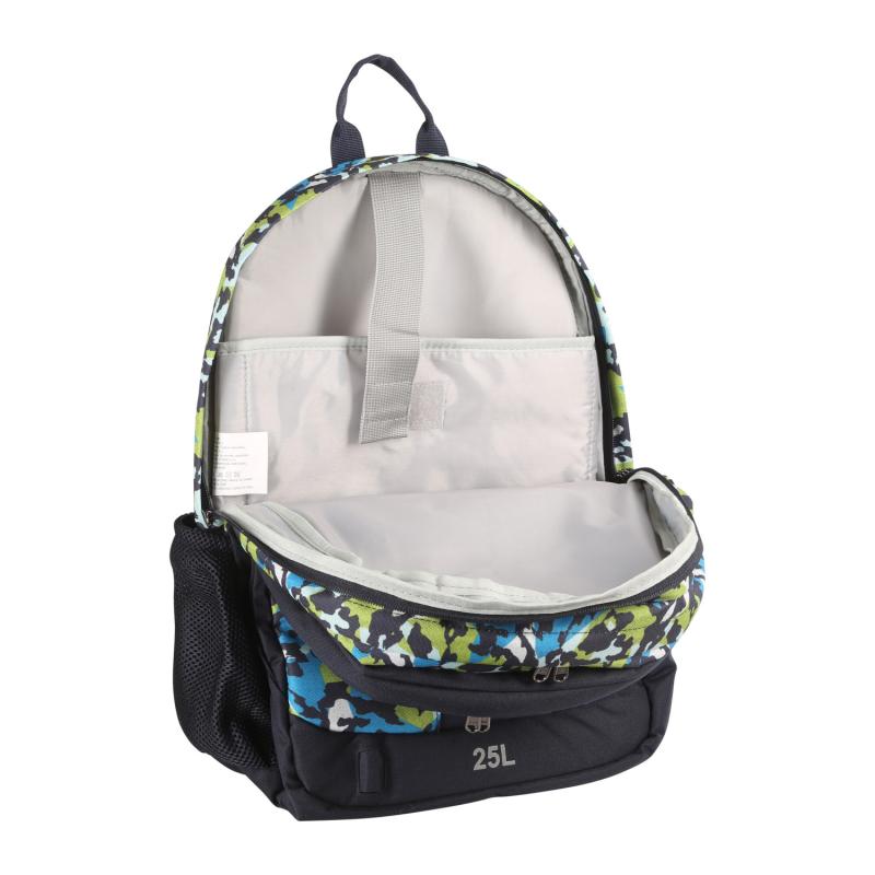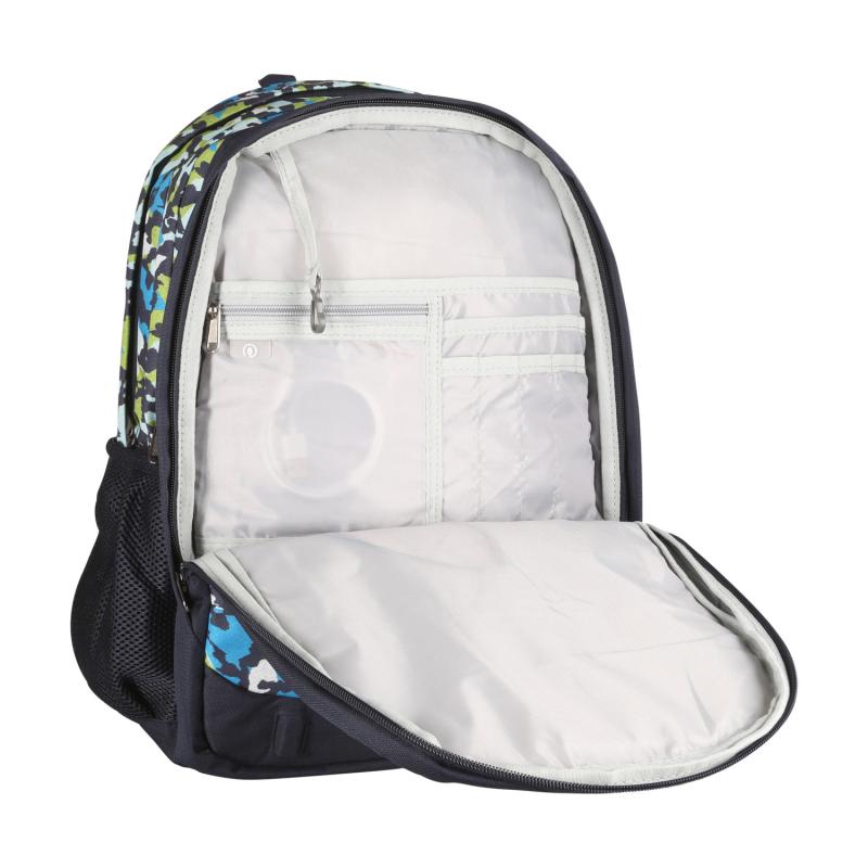 Rozmery 45x29x19 cm poskytujú dostatok priestoru pre všetky školské potreby, pričom batoh je vyrobený z vodoodolného materiálu, ktorý ochráni obsah pred nepriaznivým počasím. Disponuje tromi priestrannými komorami a niekoľkými praktickými vreckami, medzi ktoré patrí predné vrecko na zips, bočné vrecká zo sieťoviny a vnútorný vreckový organizér pre prehľadné usporiadanie školských pomôcok.