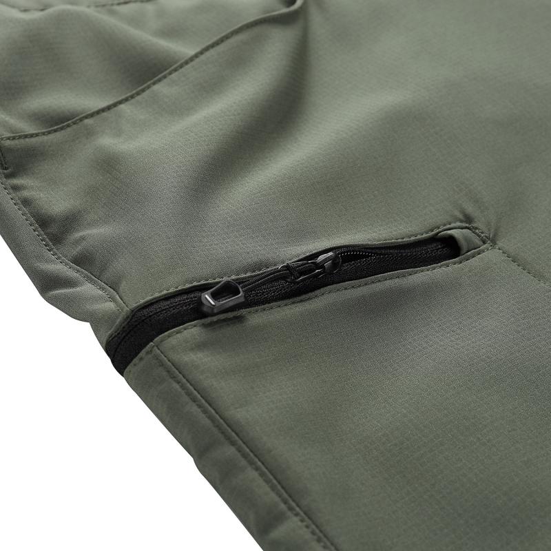 Pás je všitý do gumy, doplnený o sťahovanie na šnúrku a pútka na opasok, takže si nohavice ľahko prispôsobíte svojej postave. K dispozícii sú štyri vrecká - dve predné, jedno zadné a jedno bočné na zips, ktoré poskytujú dostatok priestoru na uloženie nevyhnutných vecí.