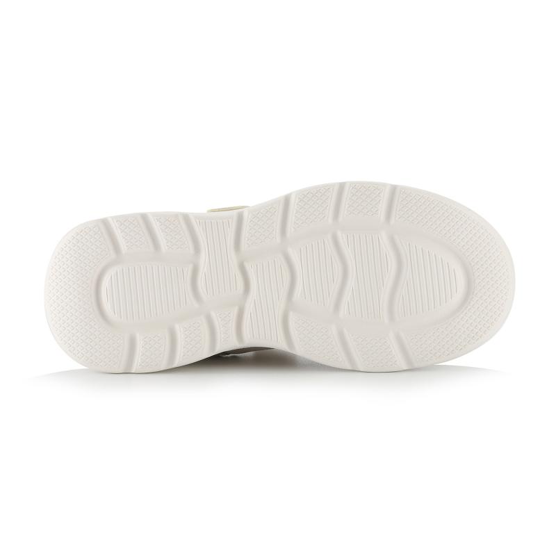 Svršek je vyroben z odolné syntetiky a textilie, která je nenáročná na údržbu a dobře odolává běžnému opotřebení. Textilní podšívka zajišťuje prodyšnost a přispívá k příjemnému pocitu nošení i během teplejších dnů. Lehká podešev z EVA materiálu efektivně tlumí nárazy, čímž zvyšuje komfort při chůzi a pomáhá chránit dětské nohy před únavou.