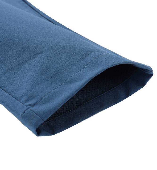 Mají polopřiléhavý střih, v zadní části zvýšený pas s poutky na pásek, anatomicky tvarovaná kolena, praktické kapsy. Nechybí ani reflexní potisk s dokonalým odrazem světla. Složení materiálu: 77% polyester, 13% polyester Cationic Dyeable yarn, 10% elastan.