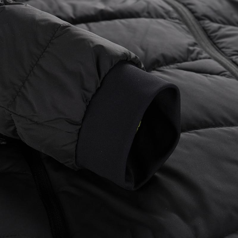 Táto páperová bunda je vyrobená z vodoodpudivého, vetruodolného, ultralahlkého a pružného materiálu so štruktúrou, ktorý vďaka špeciálnej úprave DWR zabezpečuje, že voda steká po povrchu a nevstrebáva sa dovnútra. Výplň tvorí kvalitná zmes prachového páperia a peria v pomere 90/10 s plnivosti 630–650 CUIN, čo poskytuje vynikajúcu tepelnú izoláciu i v náročných mrazivých podmienkach. Moderný PUFFY dizajn bundy podčiarkuje jej štýlový vzhľad.