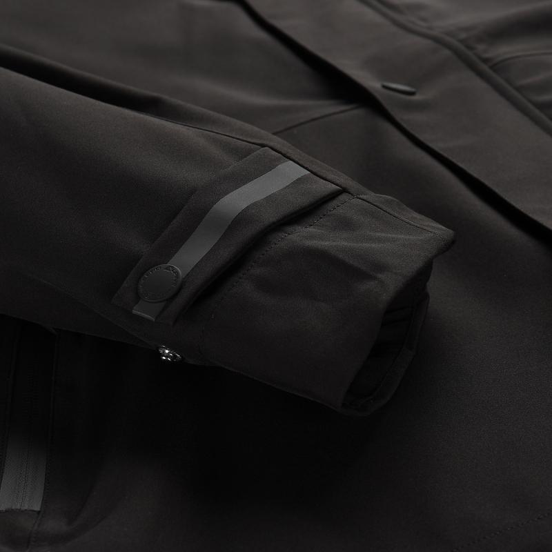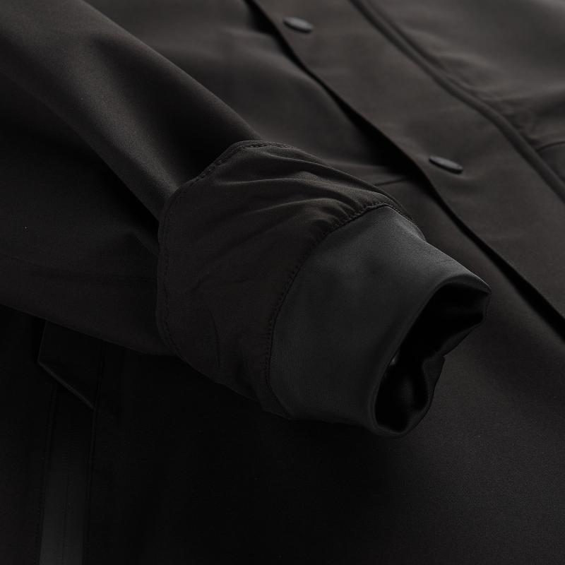 Rukávy jsou opatřeny dvojitou manžetou - vnitřní elastickou a vnější s patenty pro stahování, což zabraňuje pronikání chladu a větru. Švy jsou podlepené, což zvyšuje celkovou voděodolnost kabátu. Zapínání zajišťuje dvoucestný zip, který umožňuje pohodlné větrání i rychlé oblékání.