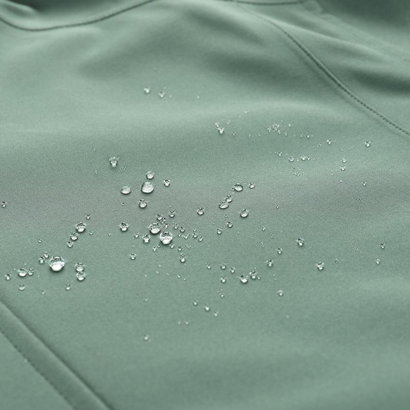 Materiál je opatřen speciální úpravou DWR (Durable Water Repellency), která vytváří vodoodpudivou vrstvu. Díky ní voda a sníh na povrchu tvoří drobné kapičky, které okamžitě stečou, což pomáhá udržet kabát déle suchý i při dešti nebo sněžení.