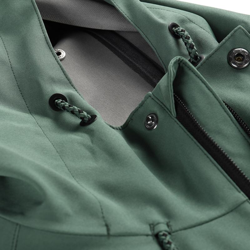Kabát má neodepínatelnou kapuci se stahováním pro lepší ochranu hlavy, tři kapsy s voděodolnými zipy pro bezpečné uložení drobností a rukávy jsou vybaveny stahováním v dolní části manžetou s patenty a vnitřní elastickou manžetou, která zabraňuje pronikání chladu a větru.