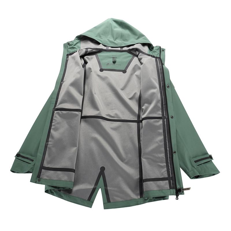 Švy jsou podlepené (Seam taped), což výrazně omezuje průnik vlhkosti dovnitř a zvyšuje odolnost proti dešti. Zipy jsou voděodpudivé, což dále zlepšuje ochranu proti vlhkosti. Dvoucestný zip (2-WAY ZIP) umožňuje pohodlné zapínání a regulaci větrání.