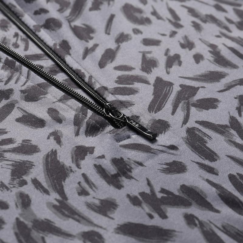 Celopotištěný vzor dodává moderní vzhled, zatímco přiléhavý střih s plochými švy a krátkým kontrastním zipem na stojáku přispívá k pohodlí a snadnému oblékání. Reflexní potisk zvyšuje viditelnost a bezpečnost při pohybu venku za šera nebo tmy.