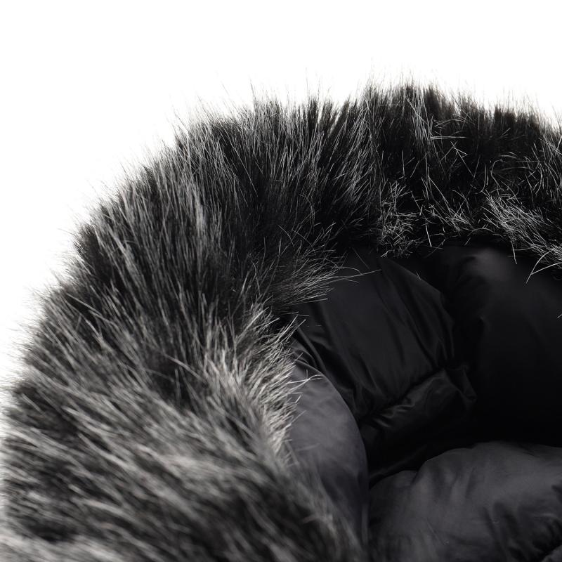 Praktické využití bundy zajišťuje osm kapes, vhodných pro bezpečné uložení mobilního telefonu, klíčů a dalších nezbytností. Spodní část je opatřena regulací šířky pomocí gumičky, což umožňuje individuální přizpůsobení střihu podle potřeby. Kapuce je neodepínatelná, ale umělá kožešina na ní je odnímatelná, což dává možnost měnit vzhled podle situace.