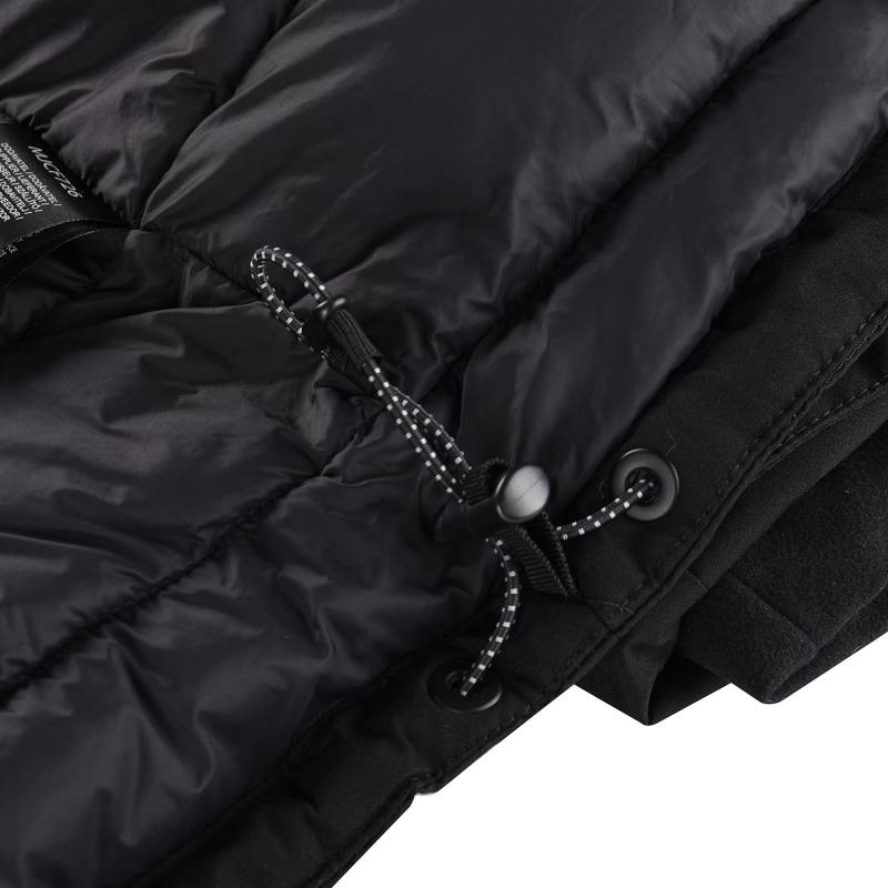 Silná hřejivá výplň v kombinaci s límcem z hřejivého materiálu, kapucí se stahováním a krytkou brady poskytuje dostatečné teplo i při nízkých teplotách. Manžety z hřejivého úpletu brání pronikání studeného vzduchu, čímž přispívají k lepšímu udržení tepla.