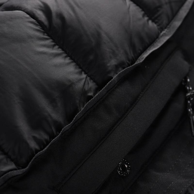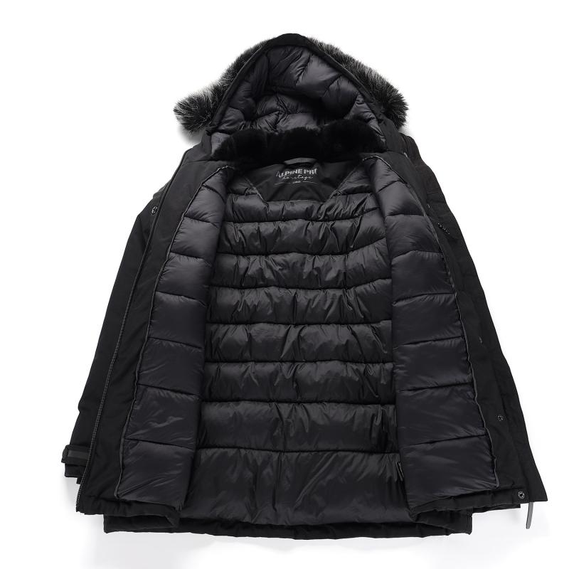Součástí je neodepínatelná kapuce s odnímatelnou umělou kožešinou, která dodává bundě elegantní vzhled a zároveň chrání obličej před sněhem a větrem. Praktické využití zajišťuje až 8 kapes rozmístěných tak, aby bezpečně uschovaly telefon, klíče, peněženku nebo další drobnosti. Zipy jsou opatřeny delšími taháčky, které usnadňují manipulaci i v rukavicích.