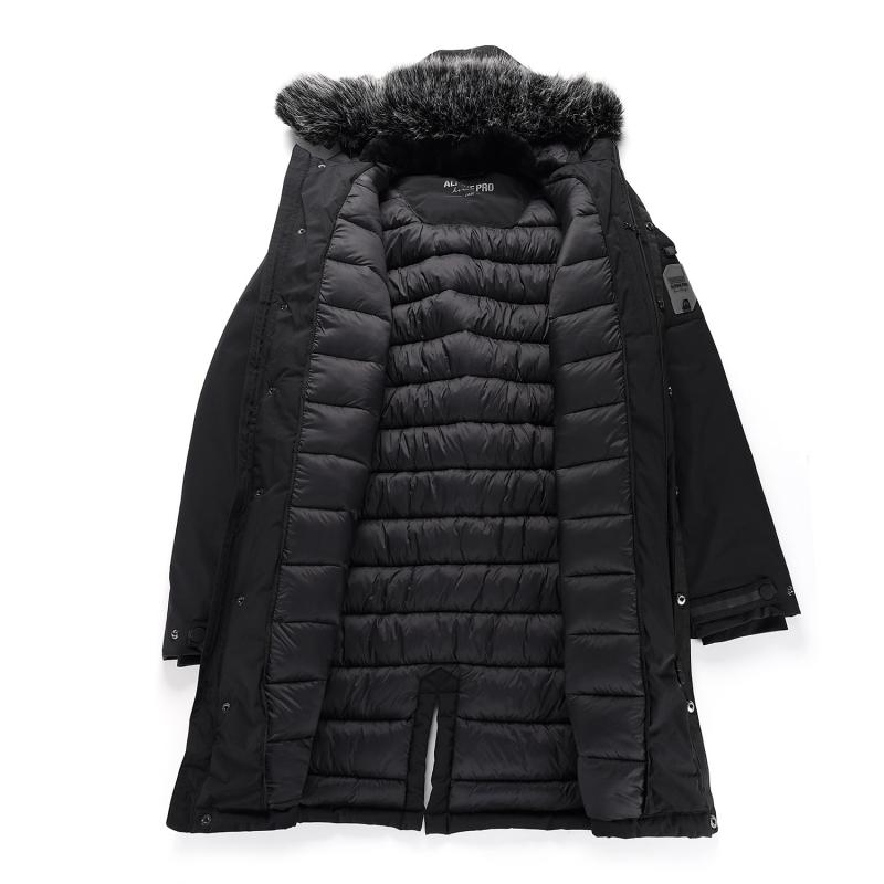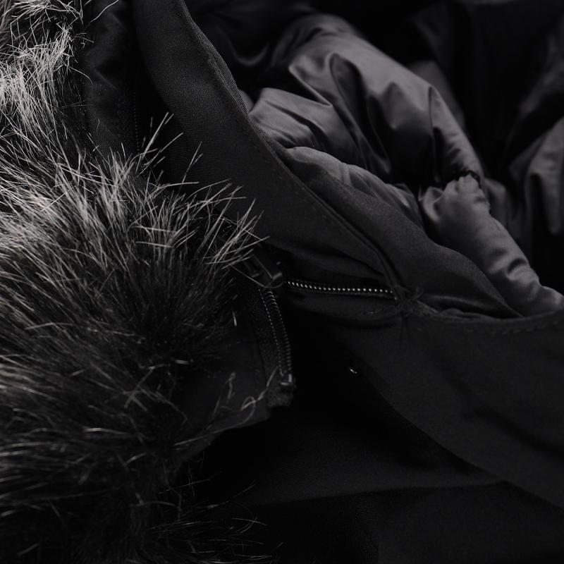 Kabát je vybavený neodpínateľnou kapucňou s odopínateľnou kožušinou, ktorá umožňuje prispôsobiť ochranu podľa aktuálnych podmienok. Praktické je aj dvojcestné zapínanie na zips, ktoré uľahčuje manipuláciu a vetranie. Rukávy majú vnútornú manžetu z úpletu, ktorá zabraňuje prenikaniu chladu a vetra.