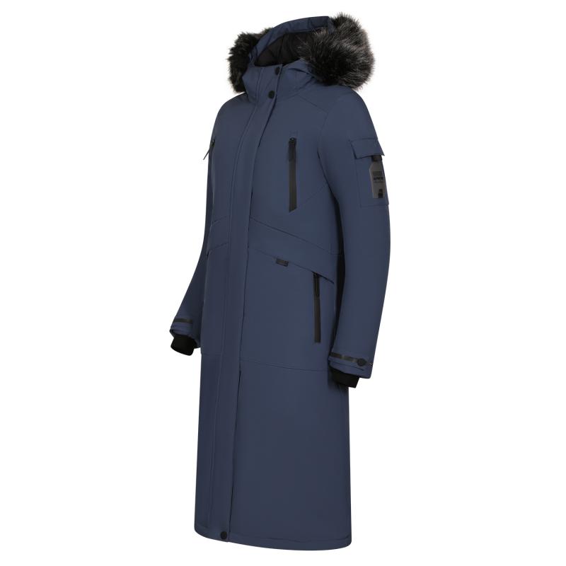 Zimní kabát s membránou PTX a vodním sloupcem 5 000 mm spolehlivě ochrání před deštěm, větrem i chladem, přitom zajišťuje pohodlí a elegantní vzhled.Tento dámský zimní kabát je navržen tak, aby poskytoval účinnou ochranu před chladem a nepříznivým počasím během zimních měsíců. Díky dlouhému střihu chrání lépe tělo před větrem a chladem, což oceníte při pobytu venku i ve městě.