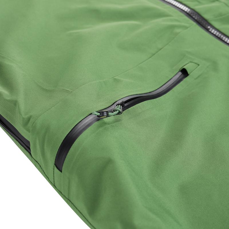 Je vyrobena z materiálu, který je vodoodpudivý, nepromokavý, paropropustný a větruodolný, přičemž je zároveň pružný, což zvyšuje komfort nošení. Díky membráně PTX s vodním sloupcem 15 000 mm a paropropustností 15 000 g/m2/24h spolu s úpravou DWR poskytuje spolehlivou ochranu proti dešti a zároveň umožňuje odvod vlhkosti zevnitř. Polopřiléhavý anatomicky tvarovaný střih a podlepené švy zajišťují, že bunda dobře sedí a chrání před pronikáním vody.