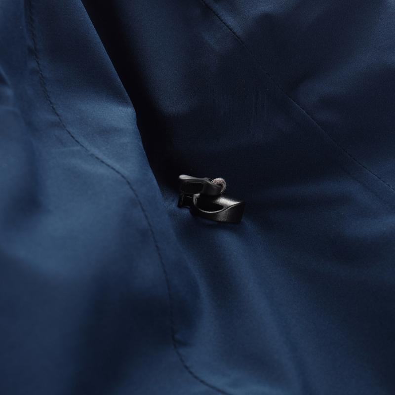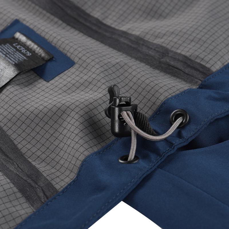 Střih bundy je polopřiléhavý a anatomicky tvarovaný s tvarovanými rukávy, což zajišťuje volnost pohybu a pohodlí i při celodenním nošení. Podlepené švy zvyšují odolnost proti pronikání vody. Kapuce je pevná, neodepínatelná a vybavená stahováním, které lze upravit podle potřeby pro lepší ochranu hlavy. Bunda má také praktické odvětrávání v podpaží s voděodolnými zipy, což oceníte při vyšší fyzické aktivitě.