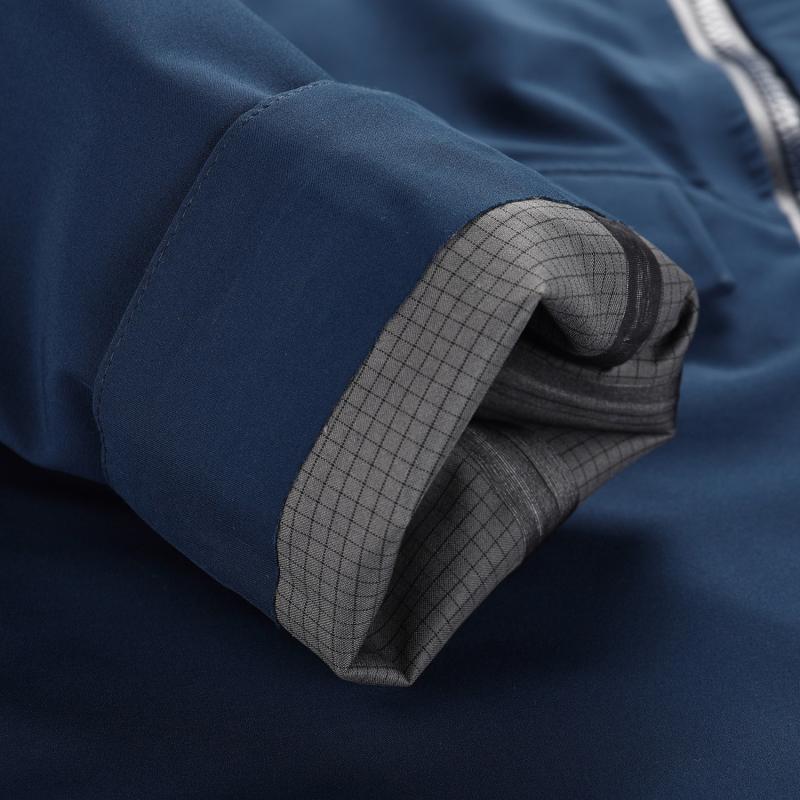 Spodní okraj je vzadu prodloužený a snadno nastavitelný pomocí stahovací gumičky, což pomáhá udržet teplo a zabraňuje pronikání větru. Hlavní zip je voděodolný a u brady opatřen krytkou z hřejivého materiálu, která chrání pokožku před odřením. Rukávy lze upravit pomocí manžety se suchým zipem, což umožňuje přizpůsobení šířky a lepší ochranu před chladem.