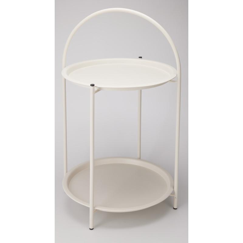 Kovový odkládací stolek s bílým povrchem, dvěma policemi a úchytem pro snadné přemísťování. Stabilní a praktický doplněk do interiéru. Zobrazit celý popis