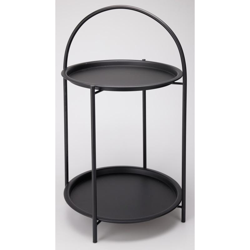 Kovový odkládací stolek s dvěma policemi a praktickým úchytem pro snadné přemísťování. Stabilní konstrukce a moderní design vhodný do různých interiérů. Zobrazit celý popis