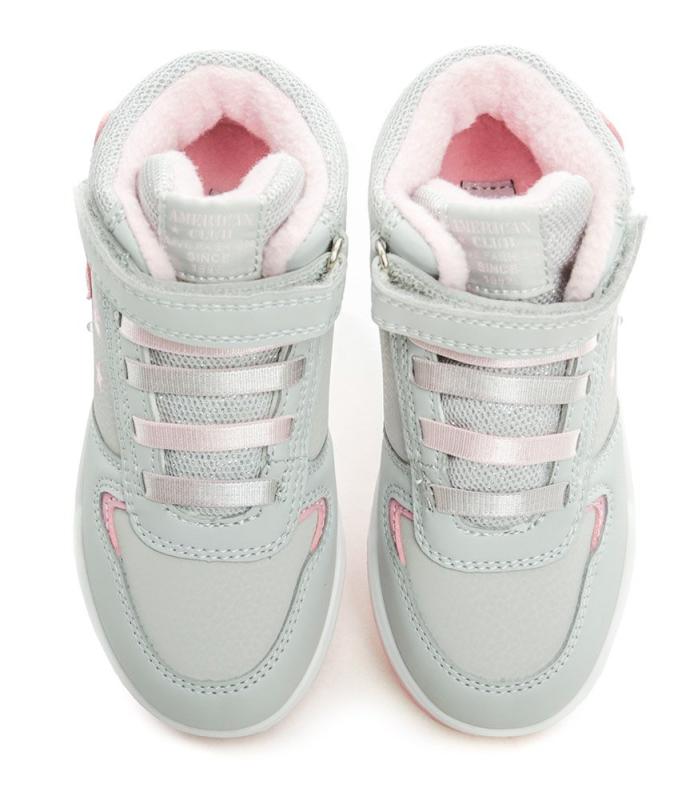 American Club ES161-24 šedo růžové dívčí zimní blikací boty