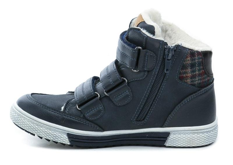 Dětské zimní boty s kombinací syntetického materiálu a textilu, vybavené zipem a suchým zipem pro snadné obouvání a teplou podšívkou s jemným kožíškem.
