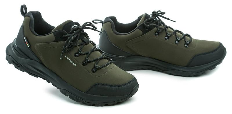 Lehké softshellové tenisky s textilním svrškem a odolnou syntetickou ochranou, vhodné na celoroční vycházky i trekking v nadměrné velikosti. zobrazit celý popis
