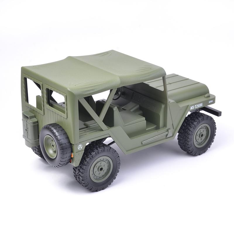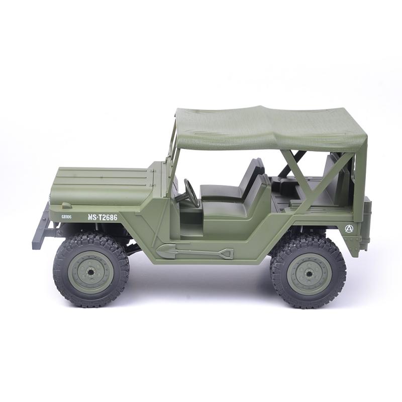 Americký JEEP v krásném provedení na dálkové ovládání 2,4Ghz, s předním osvětlením, s náhonem 4x4 a plně proporcionální jídzou v měřítku 1:14. Zvládá jízdu v náročném terénu, takže můžete jezdit venku na trávě, štěrku, kamenech i sněhu. Doba jízdy až 30 minut. Doba nabíjení cca 150 minut. Dosah dálkového ovládání cca 50 m. Akumulátor je uložen pod přední kapotou, kterou lze snadno odklopit, což je velice praktické.