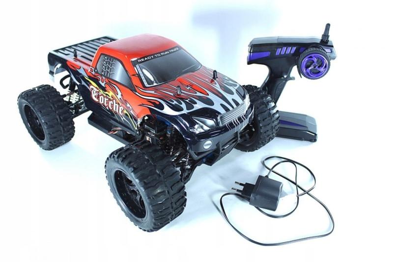 Torche MonsterTruck 4WD, 1:10, plne proporcionálny, olejové hliníkové tlmiče, kovové guľôčkové ložiská, RTR, farba červená.STROJ, S KTORÝM MÔŽETE JAK DO TERÉNU, TAK S NÍM ZÁVODIŤ VO VEĽKÝCH RÝCHLOSTIACH SA VOLÁ TORCH MONSTERTRUCK 4WD. PERFEKTNÉ JAZDNÉ VLASTNOSTI DOPLŇUJÚ SKVELÉ FUNKCIE A VÝBAVA.