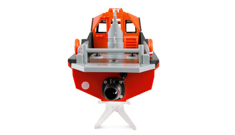 RC bezkomutátorový záchranný člun Snig, 32 cm dlouhý, 2,4 Ghz, RTR, alarm nízkého napětí baterie, elektronika odolná proti stříkající vodě, barva černočervená.Bezkomutátorový záchranný člun Snig: Váš dokonalý partner na vodě.
