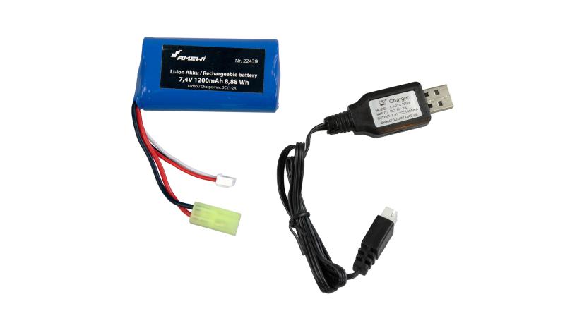 Baterie: Li-Ion 2S 7.4V LiIon 1200mAh 20C Mini Tamiya Plug, 65x35x14mm, 86g