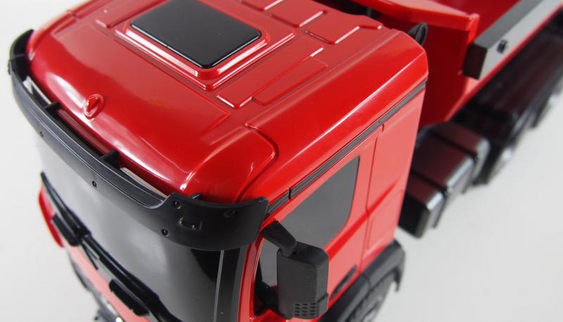 Tento do detailu propracovaný RC model sklápěče Mercedes-Benz Arocs pracuje na frekvenci 2,4Ghz, jede vpřed, vzad a zatáčí jako skutečné auto. Model je poháněn nabíjecím akupakem. Dálkové ovládání je na čtyři tužkové baterie AA a ovládá 10 fukcí.