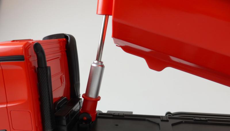 Model je v maketovém provedení, a má kovové součásti. Hlavní výhodou je oplechovaná korba, kde hrozí největší poškození. Model je vybavení efekním LED osvětlením a dále vypínatelným zvukovým modulem, který jen podtrhuje jeho autenticitu. Model doplňuje naši řadu stavební techniky v měřítku 1:14. Sklápěč je smontován a dodáván s již nainstalovanou elektronikou. Pneumatiky jsou vyrobeny z pravé gumy a poskytují enormní přilnavost na širokou škálu povrchů. Díky světelným a zvukovým efektům integrovaným v modelu nic nestojí v cestě nespoutanému potěšení z jízdy.