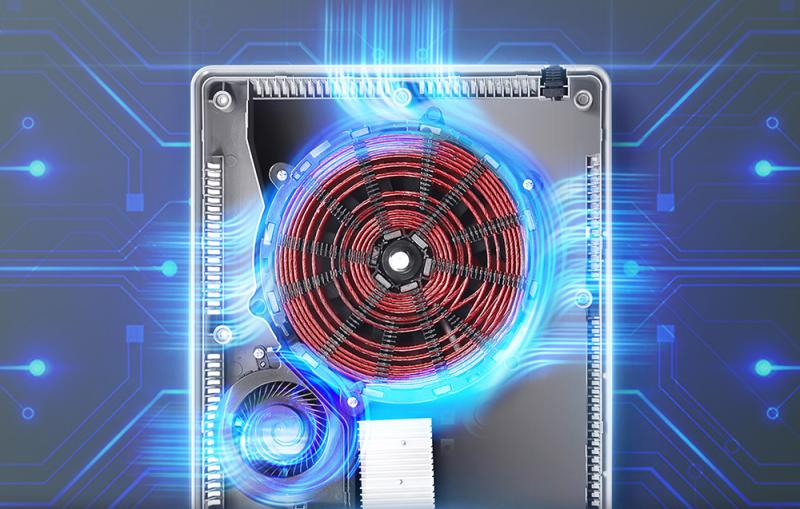 Pokročilý chladicí systém se skrytým turbo ventilátorem zajišťuje účinný odvod tepla při zachování nízké hladiny hluku (méně než 42 dB). Díky tomu je sporák vhodný i do malých prostor.