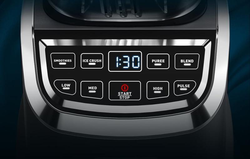 Inteligentní ovládací panel vám umožní plně přizpůsobit provoz přístroje. Pomocí programů, jako je smoothie, drcení ledu, mixování nebo pulzní režim, dosáhnete dokonalé konzistence každého připravovaného pokrmu. Displej s časovačem usnadňuje kontrolu procesu.