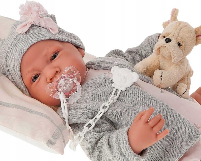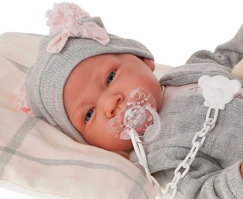 dát si ve spánku třeba ručičky za hlavu. Panenka má měkké látkové tělo, hlava a končetiny jsou vyrobené ze speciálního měkčeného vinylu, příjemného na dotek. Oblečení panenky