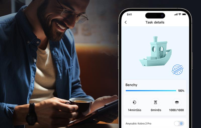 Tiskárna je vybavena 4,3palcovým barevným dotykovým displejem pro pohodlné ovládání. S jeho pomocí můžete snadno upravovat nastavení a mnoho dalšího! K dispozici máte také speciální aplikaci Anycubic, která vám mimo jiné umožňuje kontrolovat stav zařízení a vzdáleně aktualizovat software.
