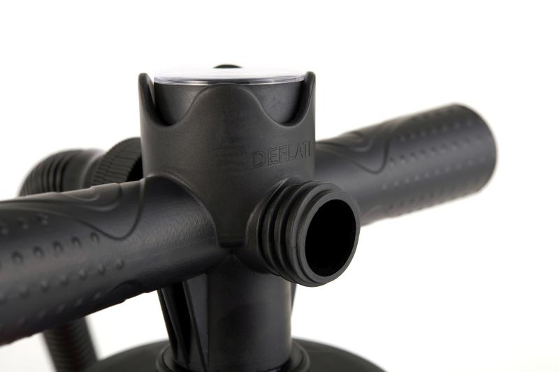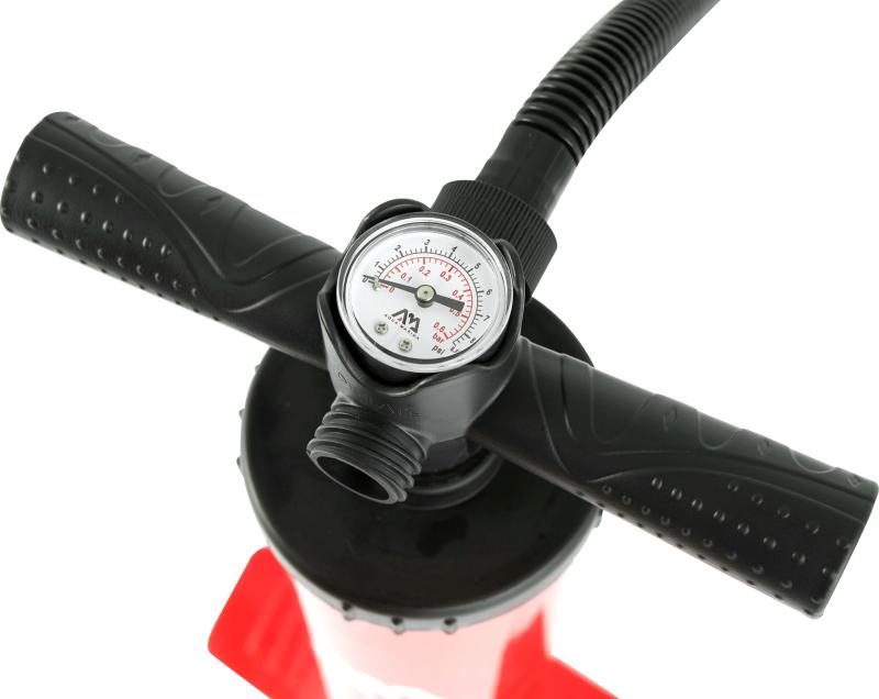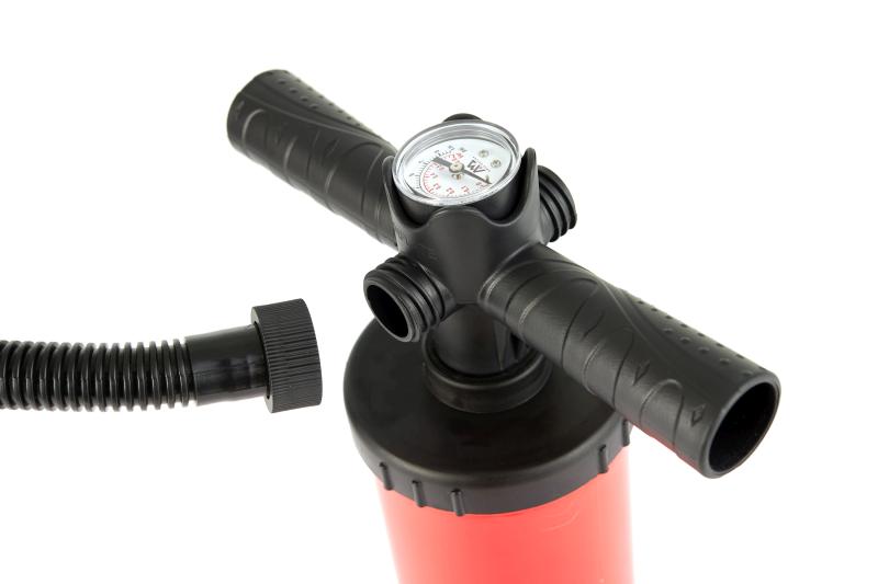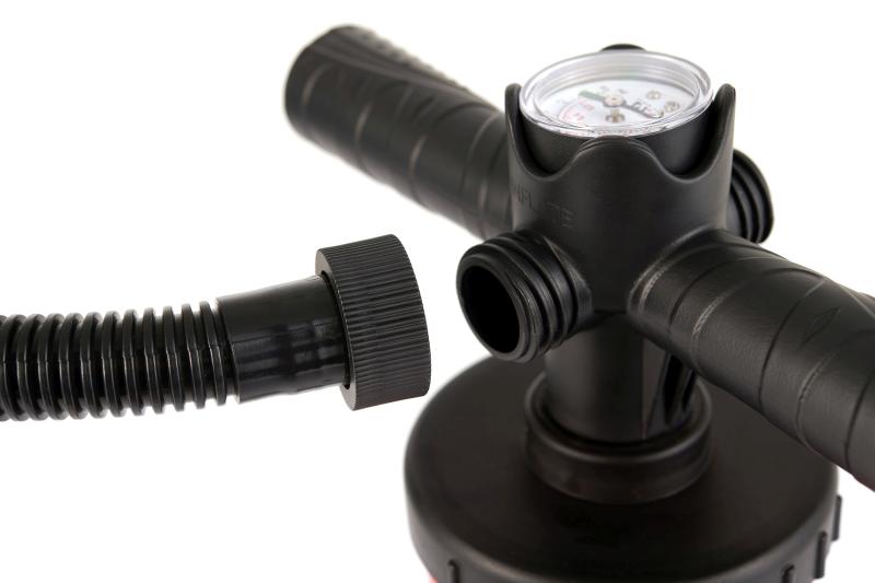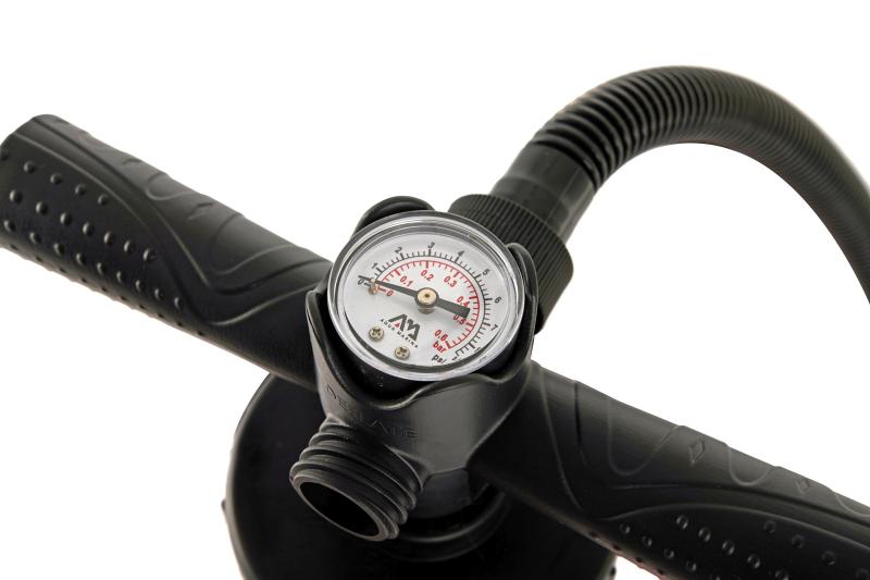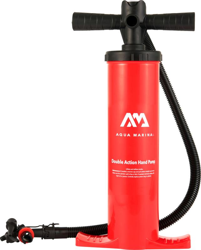 Univerzálna dvojčinná, ručná pumpa AQUA MARINA Aero l 18. Pumpa je dodávaná s radou rôznych koncoviek pre nafukovanie širokej škály nafukovacích produktov. Maximálny tlak 14 PSI (0,97 bar)
